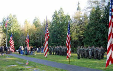 Seabee veterans, community members and active duty Seabees from NMCB 74 and CBMU 303-Det Bangor remember CM3 Marvin G. Shields on Veterans Day, 11/11/06 in Gardiner, WA |
